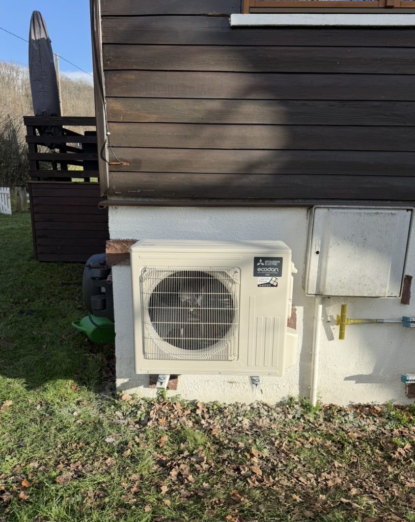 Concrètement, la pompe à chaleur air/eau duo Mitsubishi puise l’énergie dehors pour chauffer l’intérieur. Duo, ça veut dire chauffage + eau chaude en un seul appareil. Sur plancher chauffant, la diffusion est homogène – fini les coins froids ! À Gunsbach proche Munster, où les hivers pincent, ça change la vie. Et l’eau chaude 170L ? Suffisante pour une famille, sans compromis.