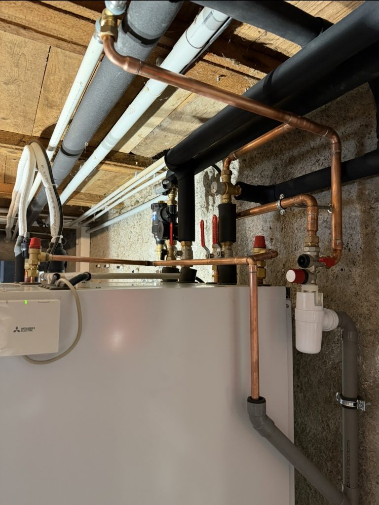 Pose Pompe à Chaleur Air/Eau Duo Mitsubishi sur Plancher Chauffant + la production d’eau chaude à Gunsbach Proche Munster